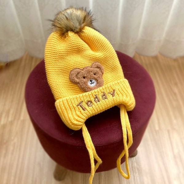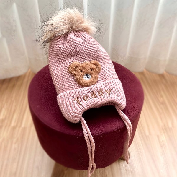 • کلاه دخترانه بافت بچگانه گوشدار تدی بیر